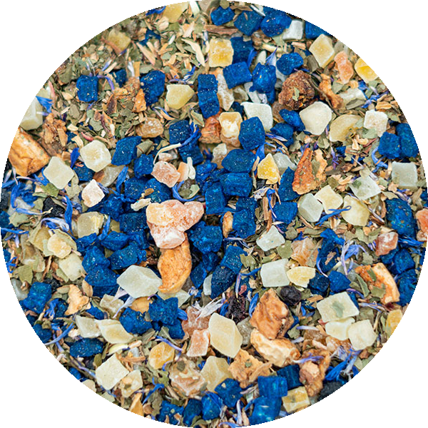 Blue Velvet Berry is een verrassende en kleurrijke fruitmelange die direct opvalt door zijn diepe, natuurlijke blauwe infusie. Bij het zetten ontvouwt zich een zachte, zoete smaak van rijpe bosbessen, gecombineerd met frisse en licht fruitige tonen van appel en exotisch fruit.