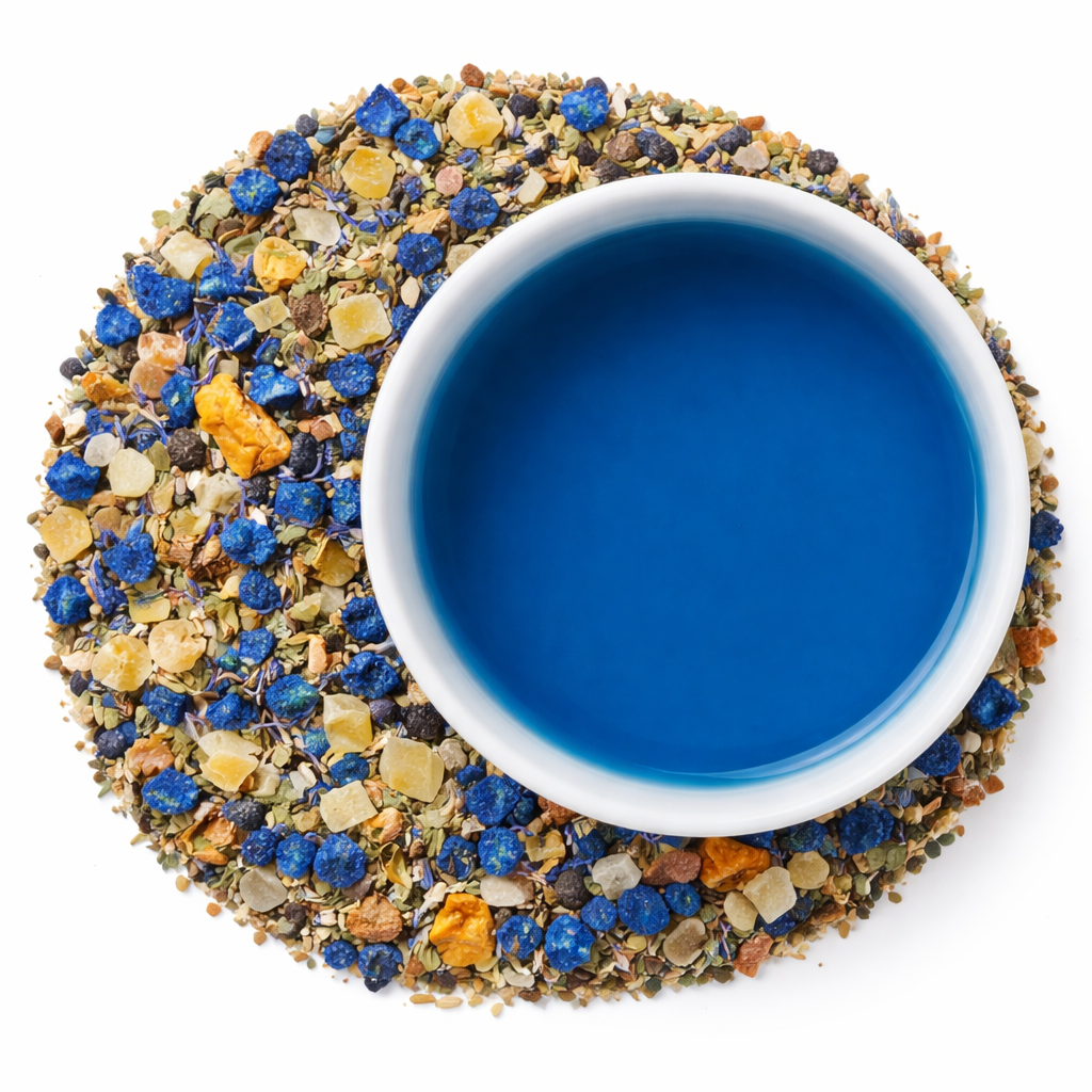 Wat deze thee écht bijzonder maakt, is de natuurlijk blauwe kleur in het kopje — een echte eyecatcher zonder gebruik van kunstmatige kleurstoffen.