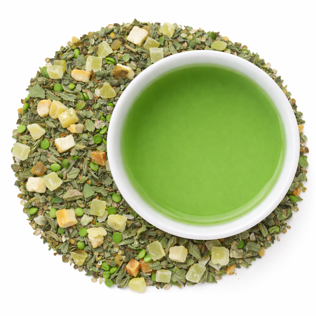 Green Apple Mint is een frisse fruitmelange waarin de sprankelende smaak van groene appel perfect samengaat met de verkoelende tonen van munt. Fruitige stukjes mango en papaya zorgen voor een zachte zoetheid, terwijl hibiscus een licht frisse, fruitige basis geeft.