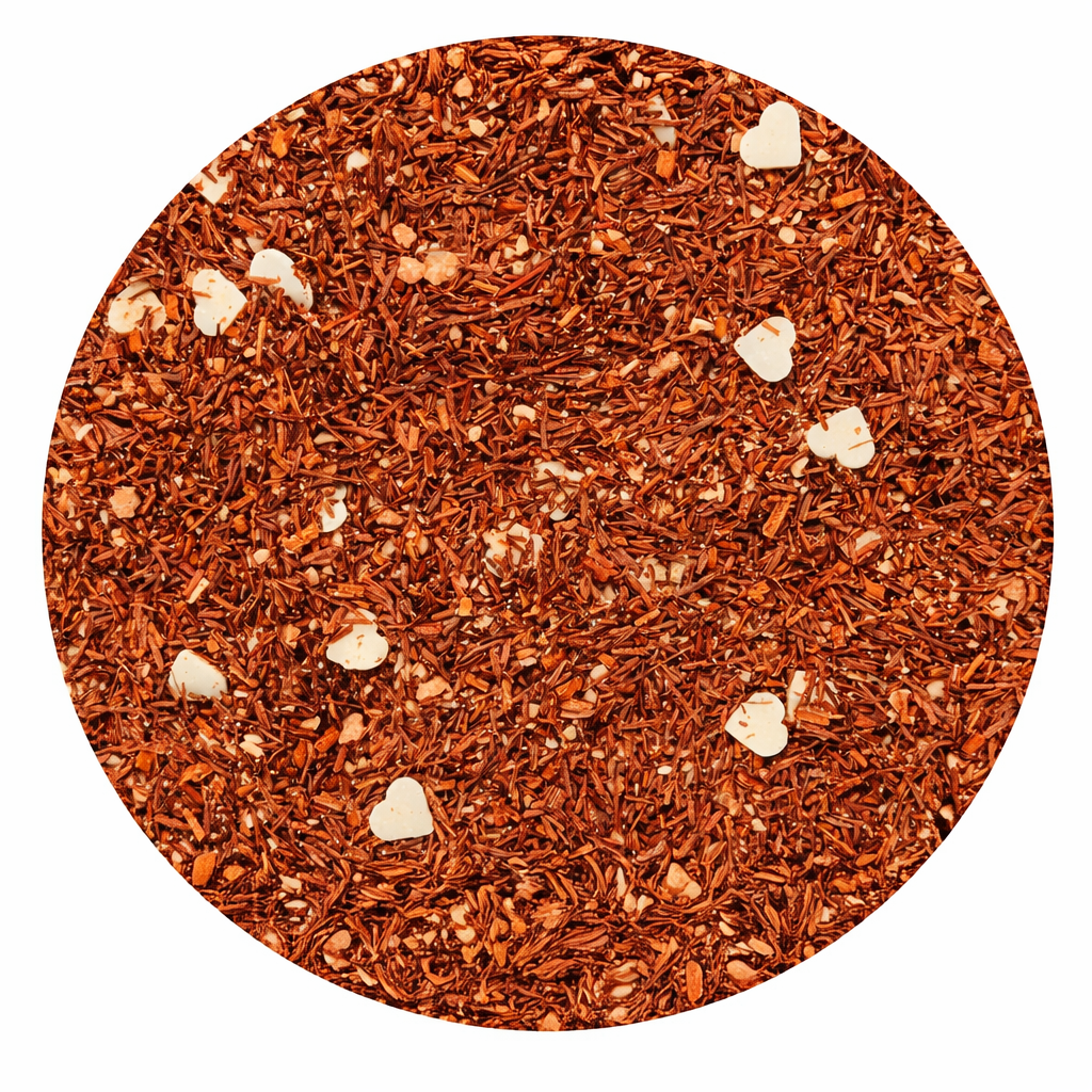 Rooibos met witte chocolade & amandel – een zachte, romige melange met een vleugje liefde in elke slok.