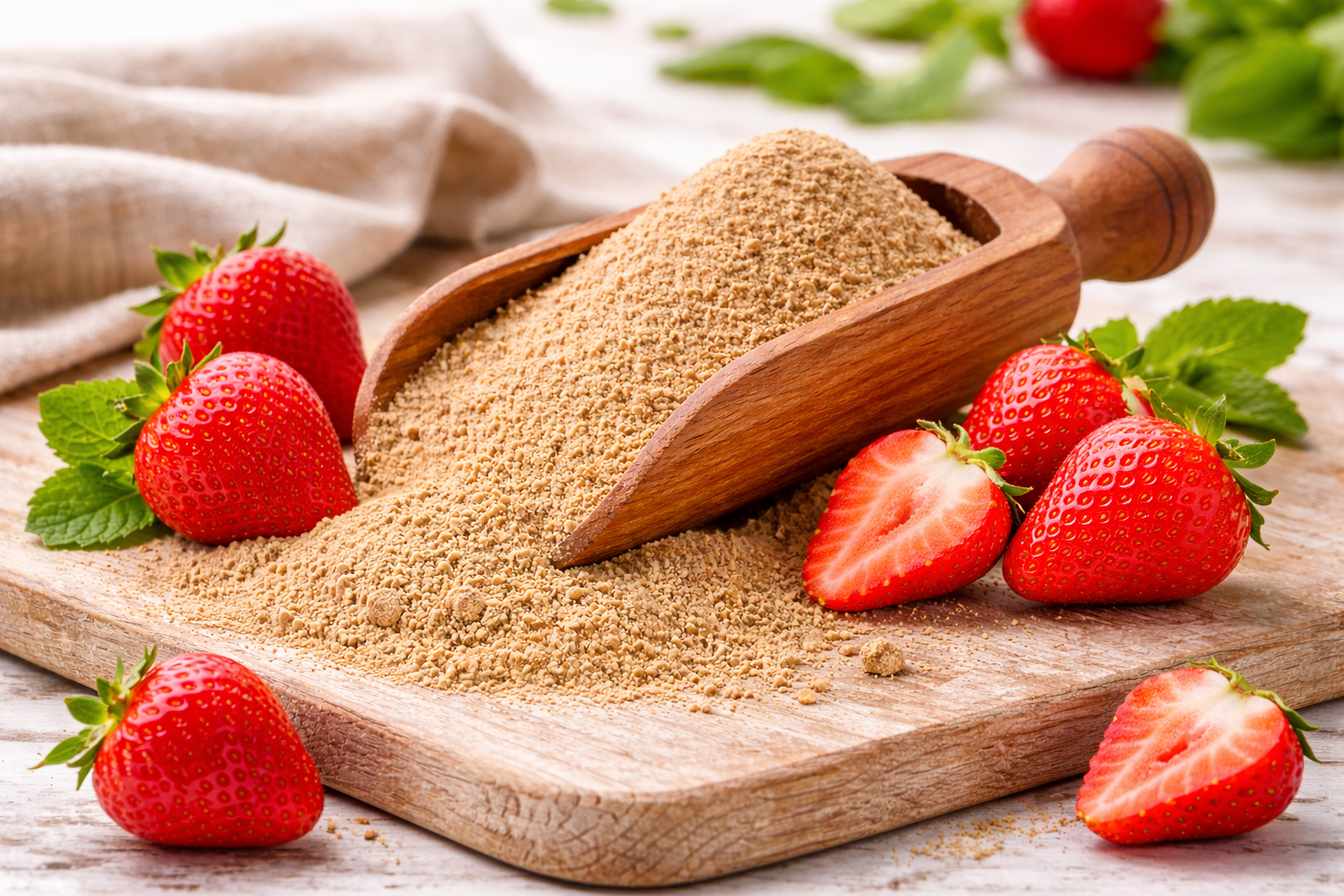 Laat je verrassen door de perfecte balans tussen fris en romig met Strawberry Cheesecake Matcha Protein. Dit bijzondere eiwitpoeder combineert de zachte kracht van matcha met de zoete, fruitige smaak van aardbei en de volle, romige tonen van cheesecake.