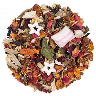 Ingrediënten: Appelstukjes (appel, zuurteregelaar: citroenzuur), pepermuntbonbons (suiker, glucosestroop, pepermuntolie, menthol, rodebietenconcentraat) (13%), hibiscusbloemen, aroma, citroengras, cacaodoppen, witte suikersterren (suiker, rijstmeel, cacaoboter, aardappelzetmeel), wortelstukjes, nanamunt (3%), steviabladeren, rozenblaadjes, frambozenstukjes.