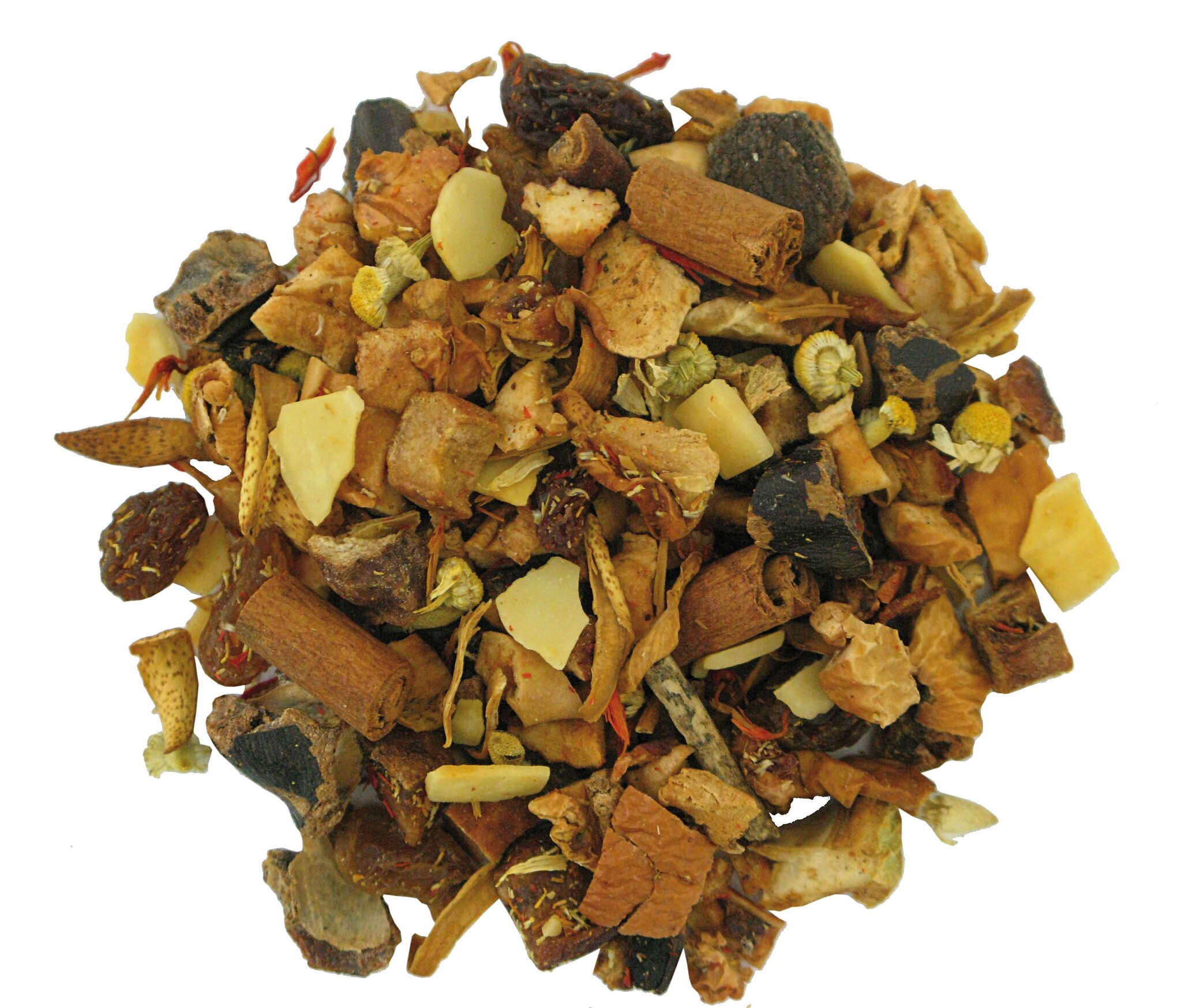 Ingrediënten: stukjes appel, geroosterde stukjes peer, rozijnen, johannesbrood, cassiabast, amandel, aroma, kamillebloemen, saffloerbloesem, natuurlijk aroma.